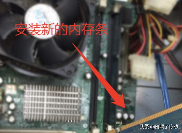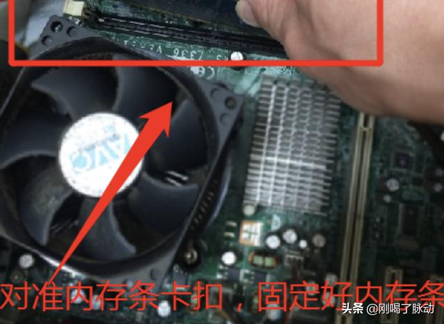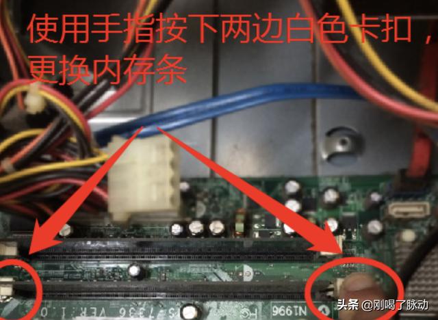 7、插入进去之后,会听到咔哒一声,然后将两边白色的卡扣卡号,再将电脑电源插上,看是否能正常开机。