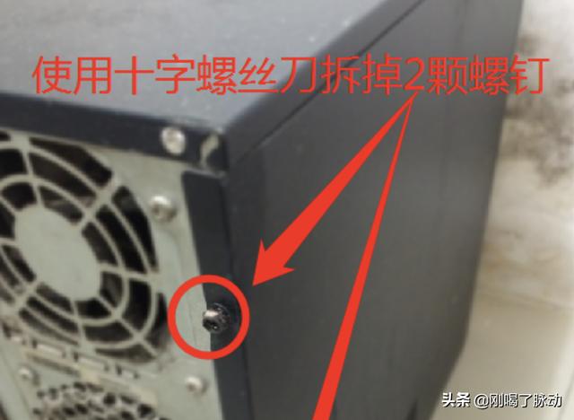 1、我们将电脑关机,拨掉电源,再用十字螺丝刀拆掉主机上面的两个螺钉。