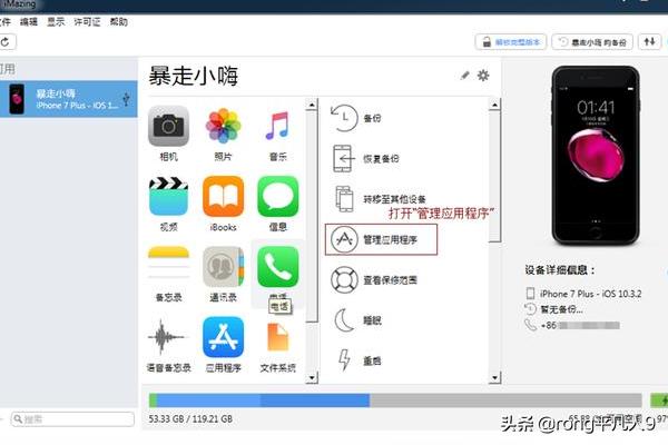 我们需要在iMazing 内打开“管理应用程序”这个界面。 可以在功能栏看到打开应用管理选项,点击打开