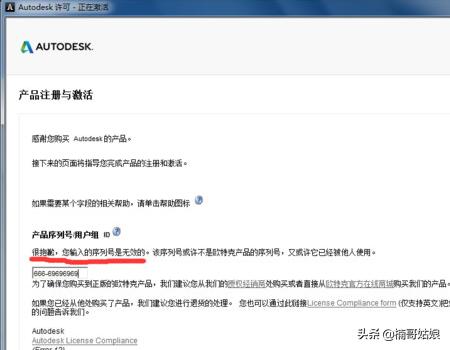 1、输入序列号,点击下一步,提示“输入的序列号是无效的”。