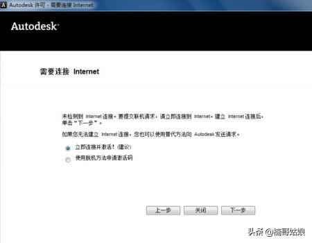 3、断开后,确认没有网络连接,使电脑处于脱机状态。此时在激活界面点击下一页,不在提示错误;此时选择使用脱机方法申请激活码。