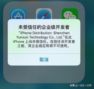 3、安装完成后,点击会出现开发者信任,再进一步设置。