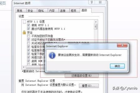 6、最后会弹出重启才能生效的提示,点击确定按钮。