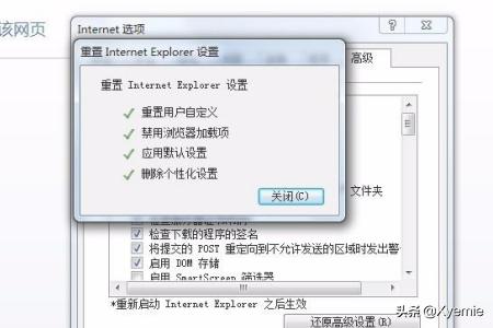 5、重置成功后点击“关闭”来关闭弹出来的提示框。