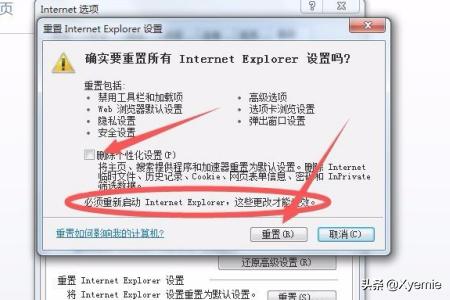 4、然后勾选上“删除个性化设置”选项,点击“重置”按钮,这些操作会在重启浏览器后生效。