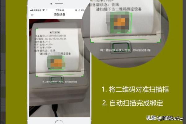 4、在打印机打印出来的小纸条上有一个二维码(注:一机一码),然后用手机扫描二维码,放入框内完成识别绑定。