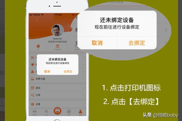 2、打开APP点击打印机图标,系统会弹出一个提示框,未绑定打印机,是否现在去绑定,点击【去绑定】。