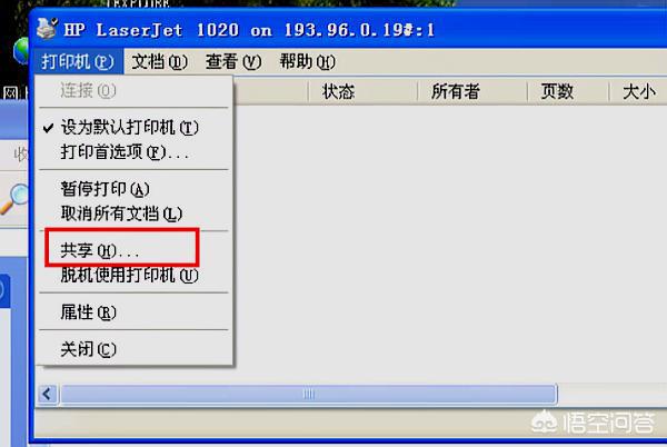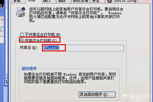 4、在“共享”选项卡上勾选“共享此打印机”,点击确定。XP电脑共享完毕。
