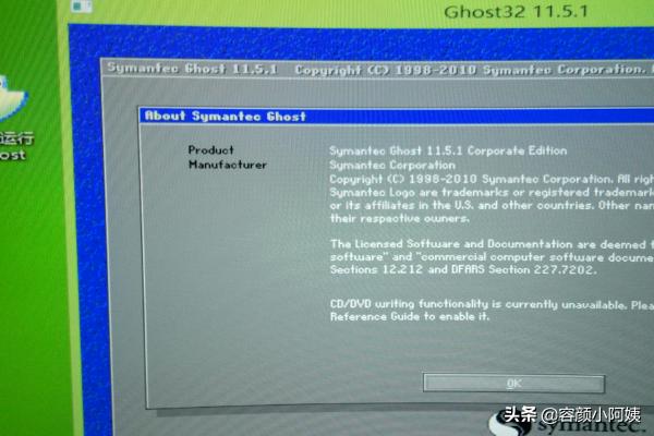 在pe系统桌面找到并双击ghost备份还原程序打开,点击OK。