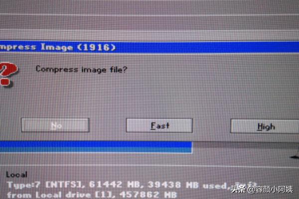 8、依次在弹出的窗口中点击fast、yes,开始备份,待进度条完成即可。