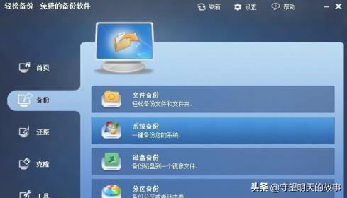 1、下载免费轻松备份,来到备份栏下选择“系统备份”。下面以备份到D盘为例。