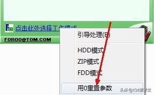 3、点击之后会出现一系列的下拉的选项,其中有一个用0重置参数的选项,我们选择这个选项来恢复减少的U盘空间。