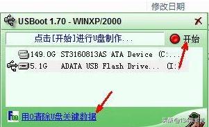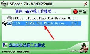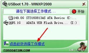1、首先打开usboot,插上U盘,在磁盘的列表会中显示出你的电脑中的所有磁盘。如图,我们点击一下U盘。