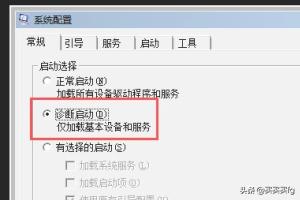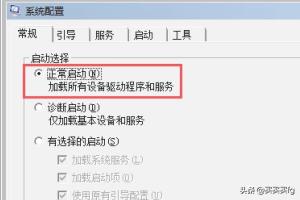 2、这时我们会看见启动选择里勾选的是“诊断启动”,也就是我们的安全模式。