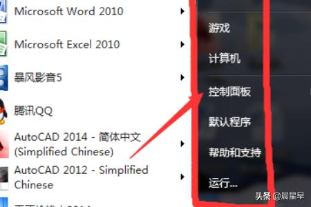 5、经过以上步骤我们冲新打开电脑开始菜单的下拉菜单,就可以看到“控制面板”就显现出来了。
