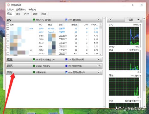 7、点击内存按钮,可以查看哪些程序在使用内存
