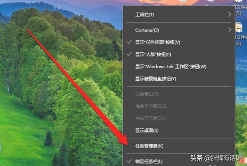 1、在win10电脑系统的,工具栏点击右键弹出菜单选择任务管理器