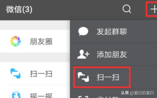 3、接着用手机上任何一个带有“扫一扫”功能的软件去扫描二维码,比如用QQ,打开QQ,右上角有点“+”号里有个扫一扫,打开后,点右上角的“相册”。