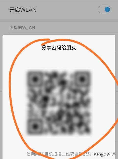 2、然后点击所选的WIFI,会出现一个二维码,用手机截图保存下来这个二维码。