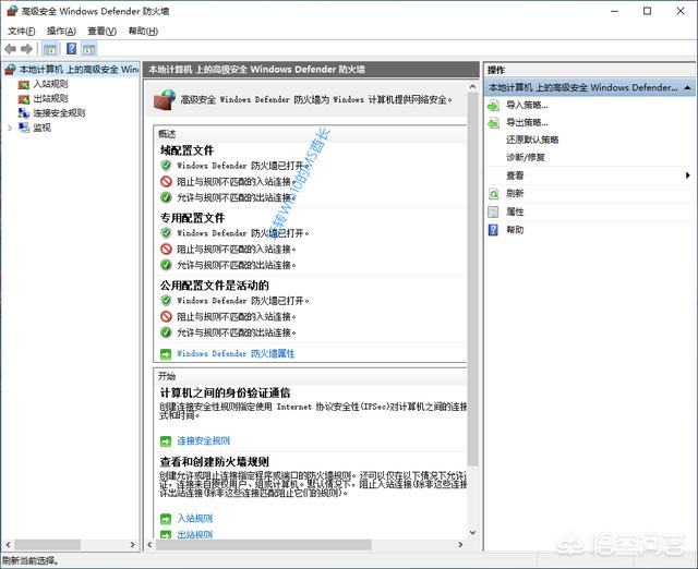 你还可以点击“高级设置”打开“高级安全Windows Defender防火墙”配置窗口。如图: