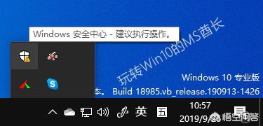 点击win10屏幕右下角通知区域的Windows安全中心图标。如图: