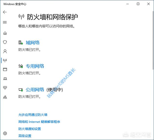 点击“防火墙和网络保护”打开如下图所示设置界面: