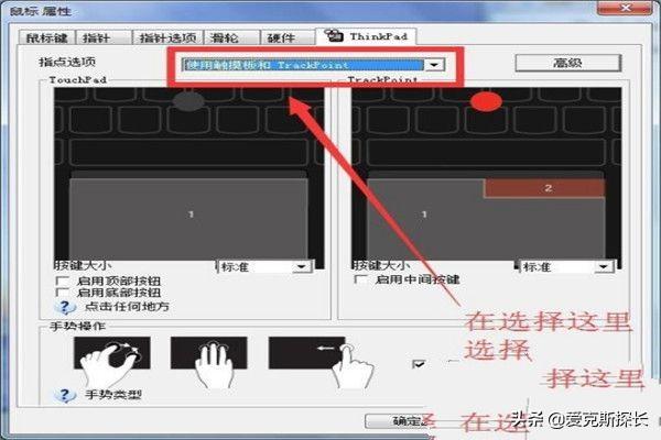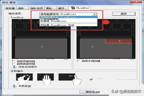 7点开指点选项的菜单之后有三个选项,一个是触摸板和TrackPoint,一个是仅触摸板,一个是仅TrackPoint,我们选择仅TrackPoint即可!