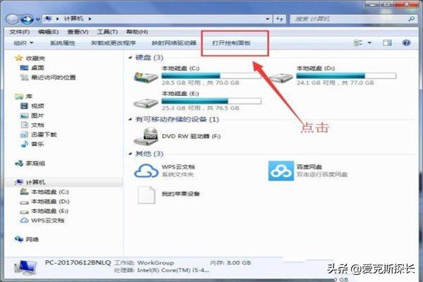 2然后我们打开我的电脑,找到里面的控制面板属性,位置如下图所示: