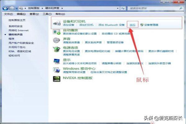 4打开控制面板之后我们先找到“设备和打印机”选项,然后找到其中的“鼠标”,点击进入即可。