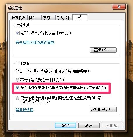选择系统属性-远程,选择“允许任意版本……”
