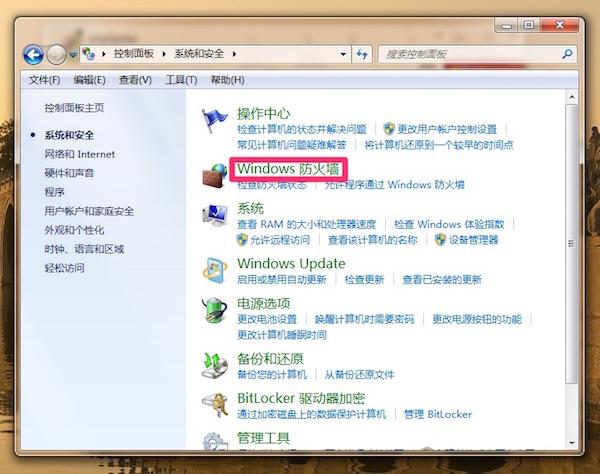 Win7 对安全的设置较高,只有当防火墙启用后才能进行远程控制。需要注意的是,防火墙并不能完全防止恶意的远程控制,所以一方面应该为电脑设置较为复杂的密码且定期更换,另一方面使用专业安全软件防止木马的侵袭。进入控制面板-系统和安全,点击 Windows 防火墙。
