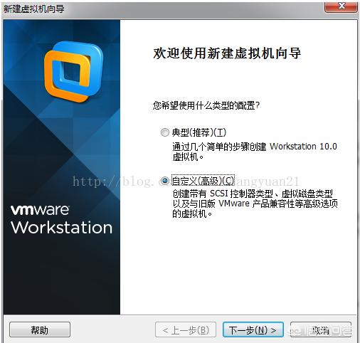 VMWare安装好之后,选择"文件"---"新建虚拟机",进入到创建虚拟机的界面,如下