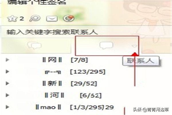1录上QQ软件。鼠标放置在联系人位置,就会看到右边箭头指示方向有个下拉箭头。