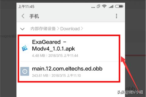 1.首先是需要找到并且获得exagear安装包apk与数据包obb,在找到之后下载并且安装exagear安装包apk;