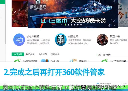 3,完成之后再打开“360软件管家”,就可以下载你需要的软件。
