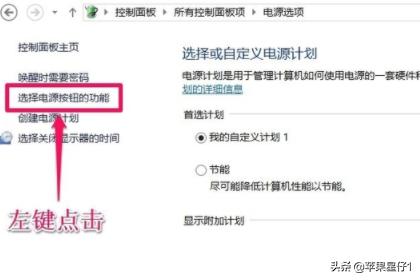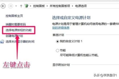 2、在打开的电源选项窗口,左键点击:选择电源按钮的功能,打开系统设置;