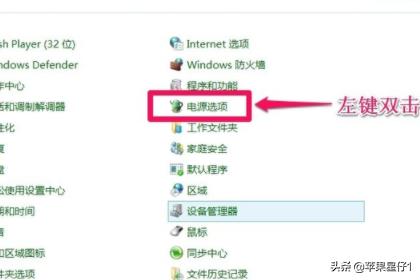 1、左键双击控制面板(控制面板已放到桌面),再左键双击:电源选项;