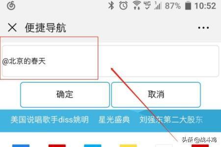 4、在弹出的输入框里面,输入一个自己想取的名字,前面加上@,比如例子中的@北京的春天,点击确定。