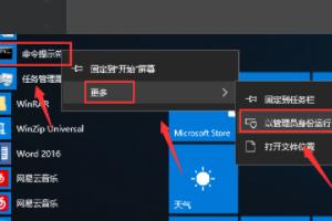 2.找到命令提示符,右键单击选中更多--以管理员身份运行,如下图所示