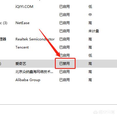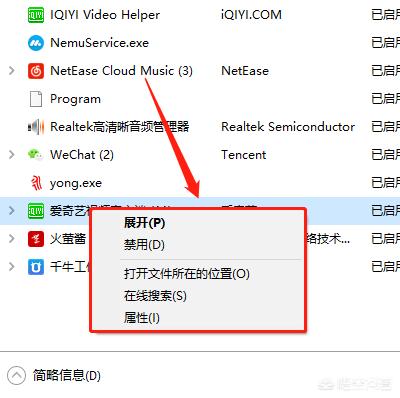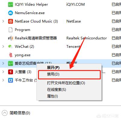 3、找到需要禁止自启动的程序。例如爱奇艺视频客户端。