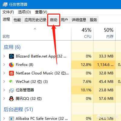 切换到“启动”选项卡。在任务管理器中,找到“启动”选项卡。