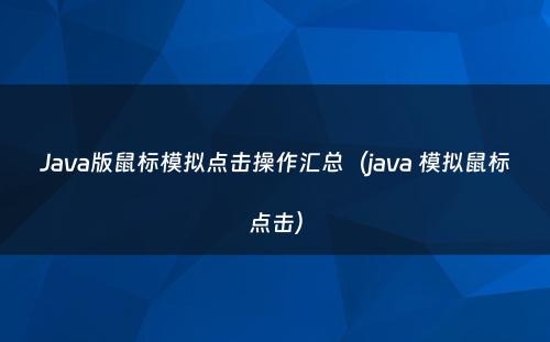 Java版鼠标模拟点击操作汇总(java 模拟鼠标点击)